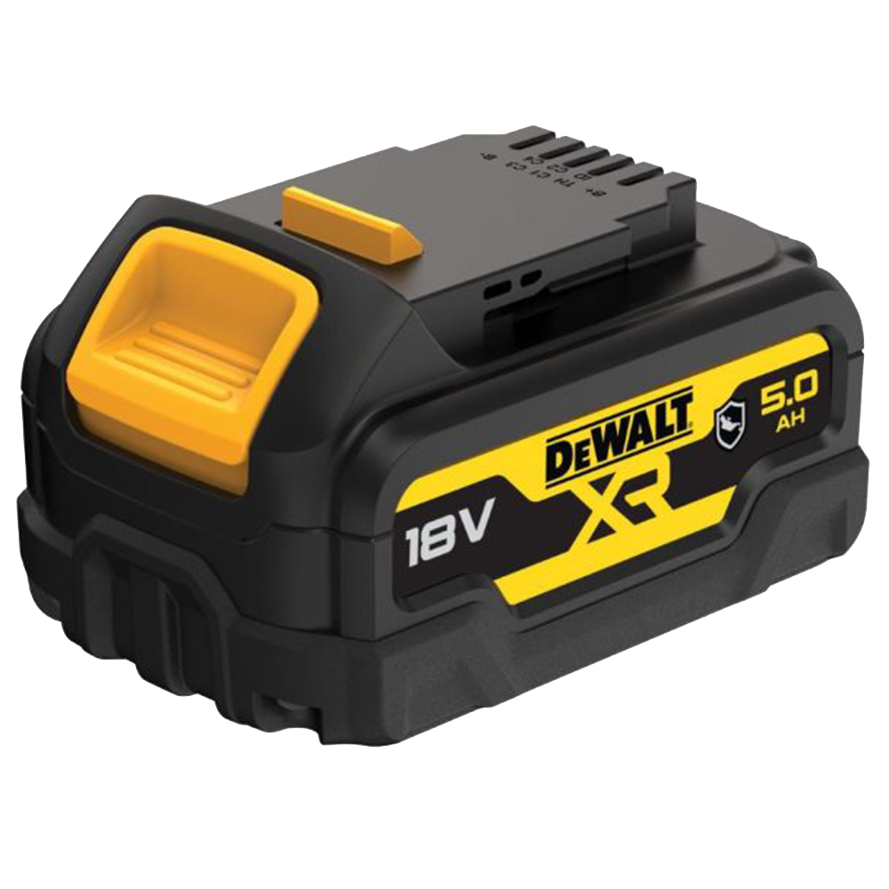 Acumulator Li-Ion Dewalt DCB184G, XR 18 V, 5.0 Ah conceput sa reziste mai bine la agentii chimici si la șocuri.
