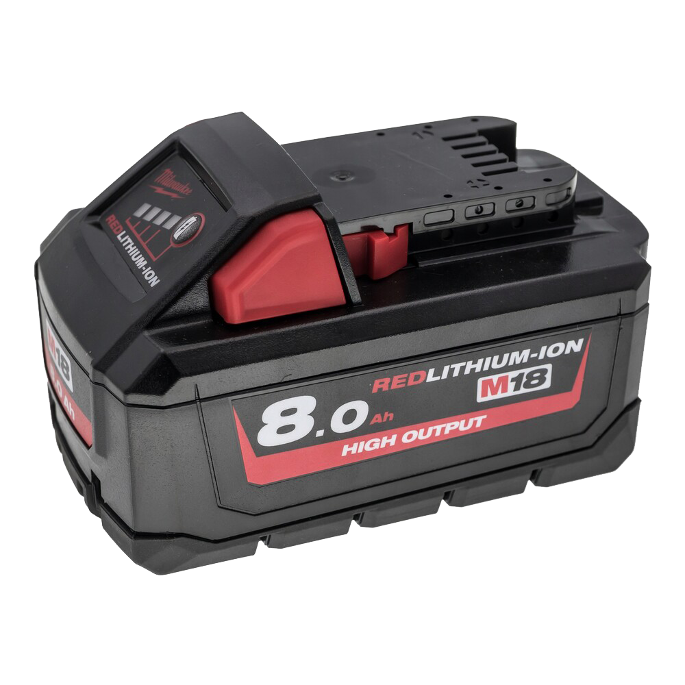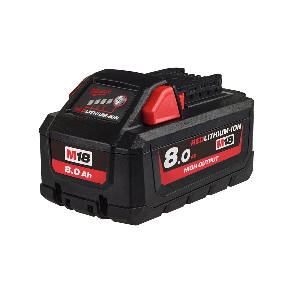 - Acumulator Li-Ion din gama Milwaukee® M18™, cu capacitatea de 8,0 Ah, cu tehnologia noua HIGH OUTPUT ™;