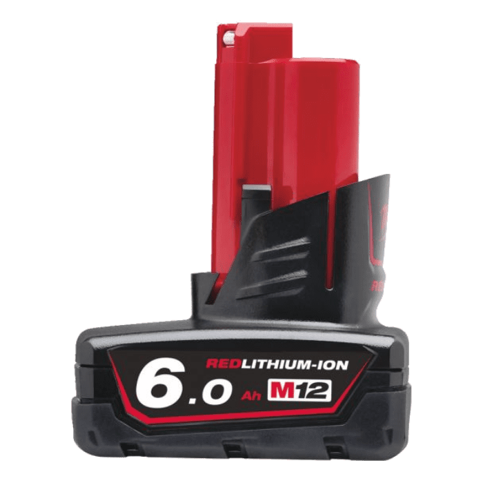 - Acumulator Li-Ion din gama Milwaukee® M12™, cu capacitatea de 6,0 Ah (4932451395), si cu o greutate de 638 g;