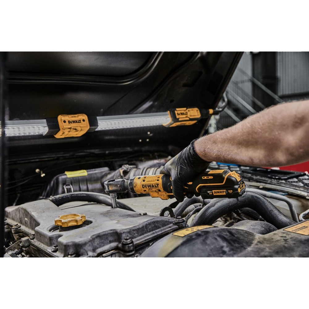 - Cu o lungime totală de numai 305 mm, clichetul fără fir DCF504L1G poate fi folosit fără probleme și în spații restrânse.