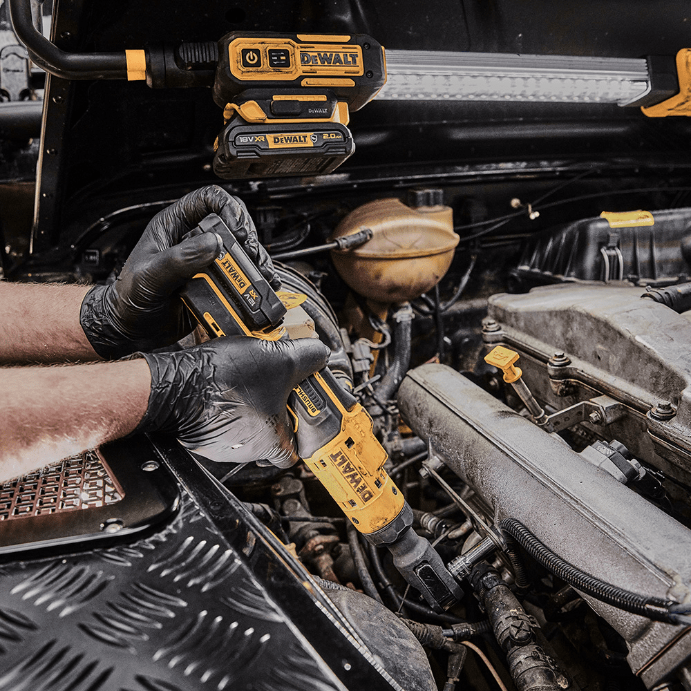 - Acest clichet compact și ușor de 12 V este dotat cu un declanșator cu viteză variabilă care permite utilizatorului să controleze viteza clichetului în funcție de aplicație, un mecanism de blocare a declanșatorului la îndemână previne pornirea bruscă a instrumentului.