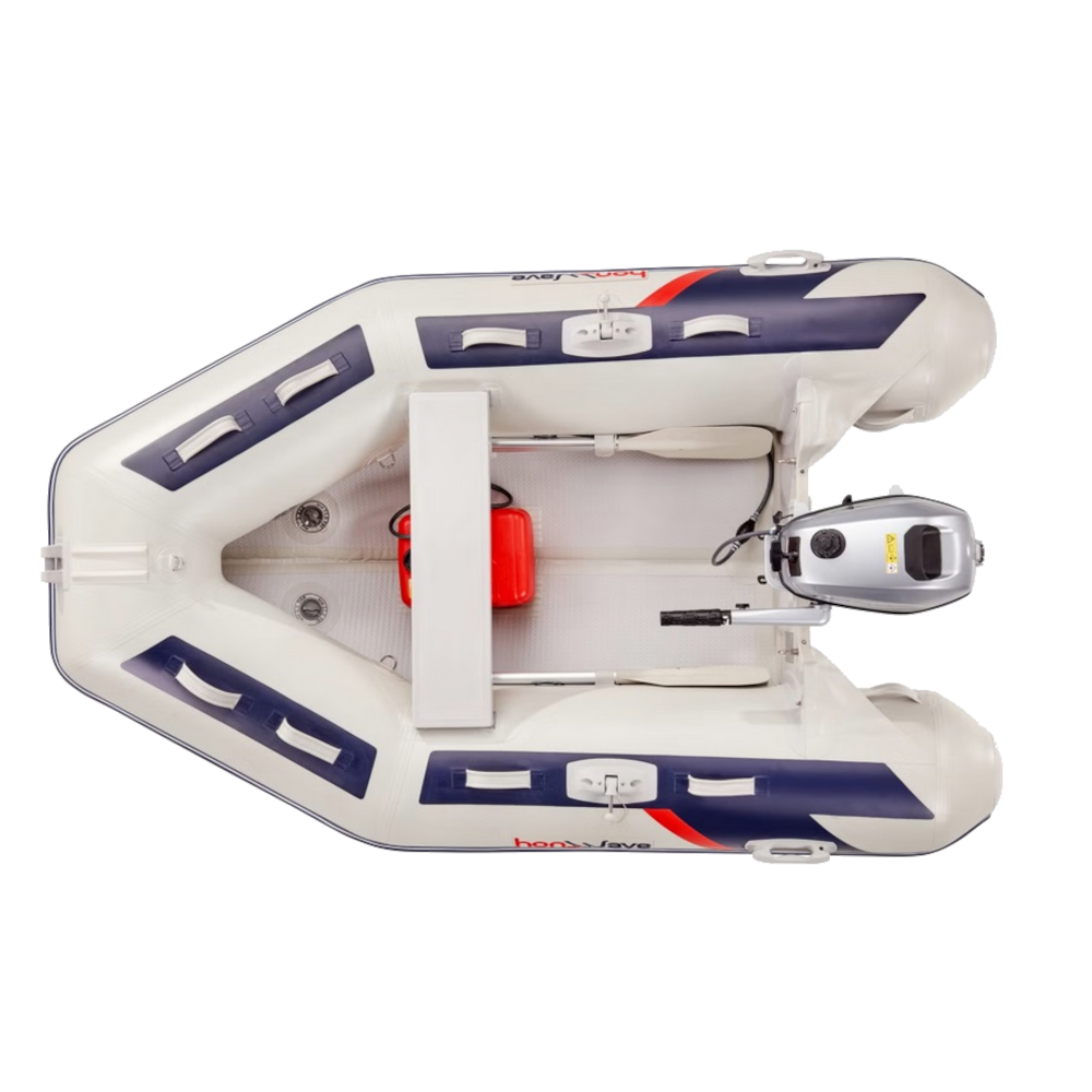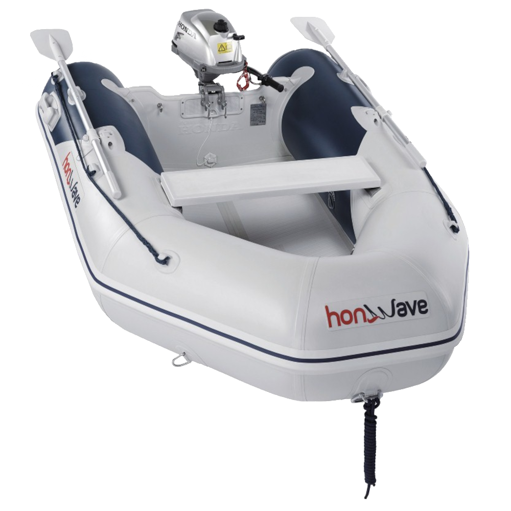 - Bărcile pneumatice cu podina de înaltă presiune Honda Honwave T24-IE3, 2.40 metri sunt uşoare, portabile şi perfecte pentru excursii pe lacuri sau pe mare.
