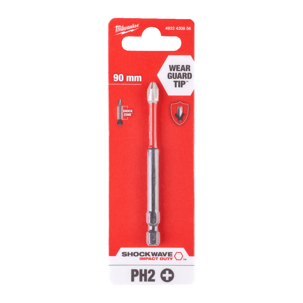 - Oțel proiectat personalizat Milwaukee® – formula de metal personalizat face ca biții Shockwave sa fie mai rezistenti la șoc, la impact.