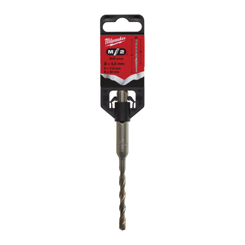 - Burghiu SDS-plus M2 cu doua taisuri, cu diametrul de Ø5.5mm, cu lungimea utila de 50mm si lungimea totala de 110mm.