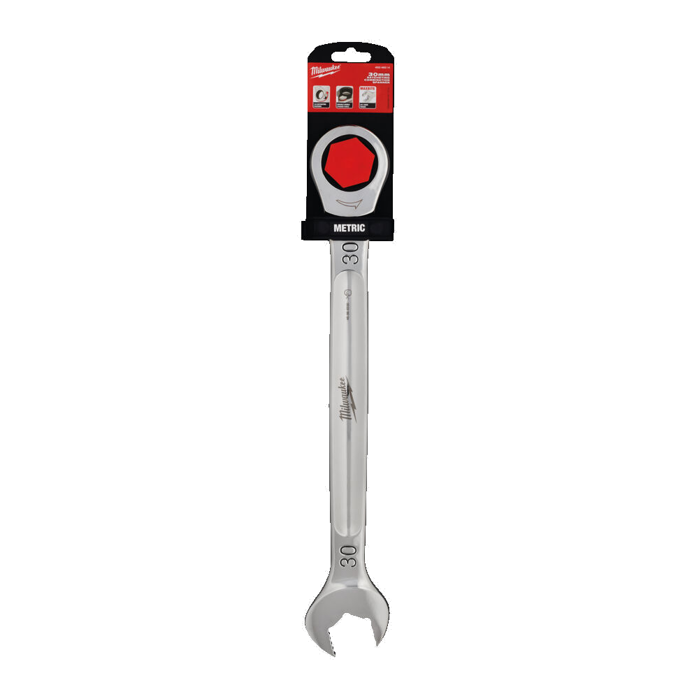 - Cheie combinata cu clichet cu falci Maxbite™ in sistem metric, cu deschiderea de 30mm si lungimea totala de 393mm.