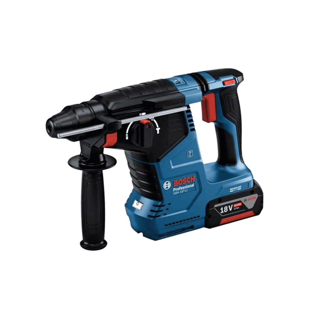 - Acest model de GBH 187-LI este echipat cu mandrina patentată ONE Chuck, adica o mandrina unica speciala, care este proiectată atât pentru burghie SDS PLUS, cât și pentru burghie obișnuite cu tijă cilindrică sau hexagonala, cu pana la 10 mm deschidere a bacurilor.