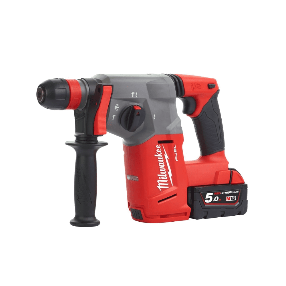 - Ciocan rotopercutor SDS-plus Milwaukee, cu acumulator de 18V, cu energie de lovire de 2,5 Jouli, si diametrul maxim de gaurire de 26 mm;