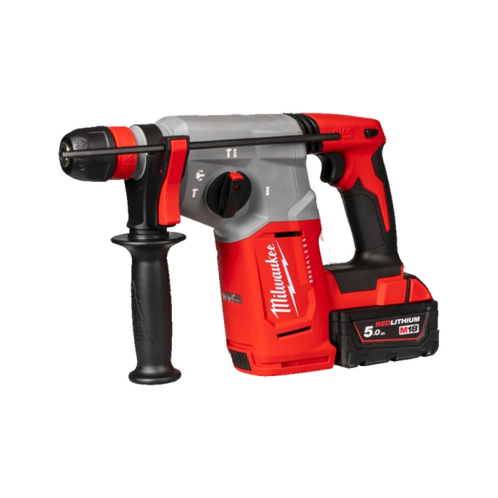 - Ciocan rotopercutor SDS-plus Milwaukee, cu acumulator de 18V, cu energie de lovire de 2,3 Jouli, si diametrul maxim de gaurire de 26 mm, cu doua mandrine cu prindere Fixtec;