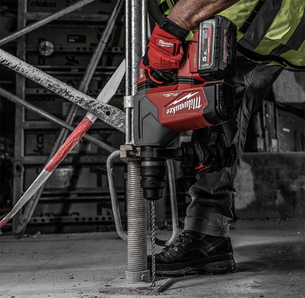 - Ciocan rotopercutor SDS-plus Milwaukee, cu acumulator de 18V, cu energie de lovire de 5 Jouli, si diametrul maxim de gaurire de 32 mm;