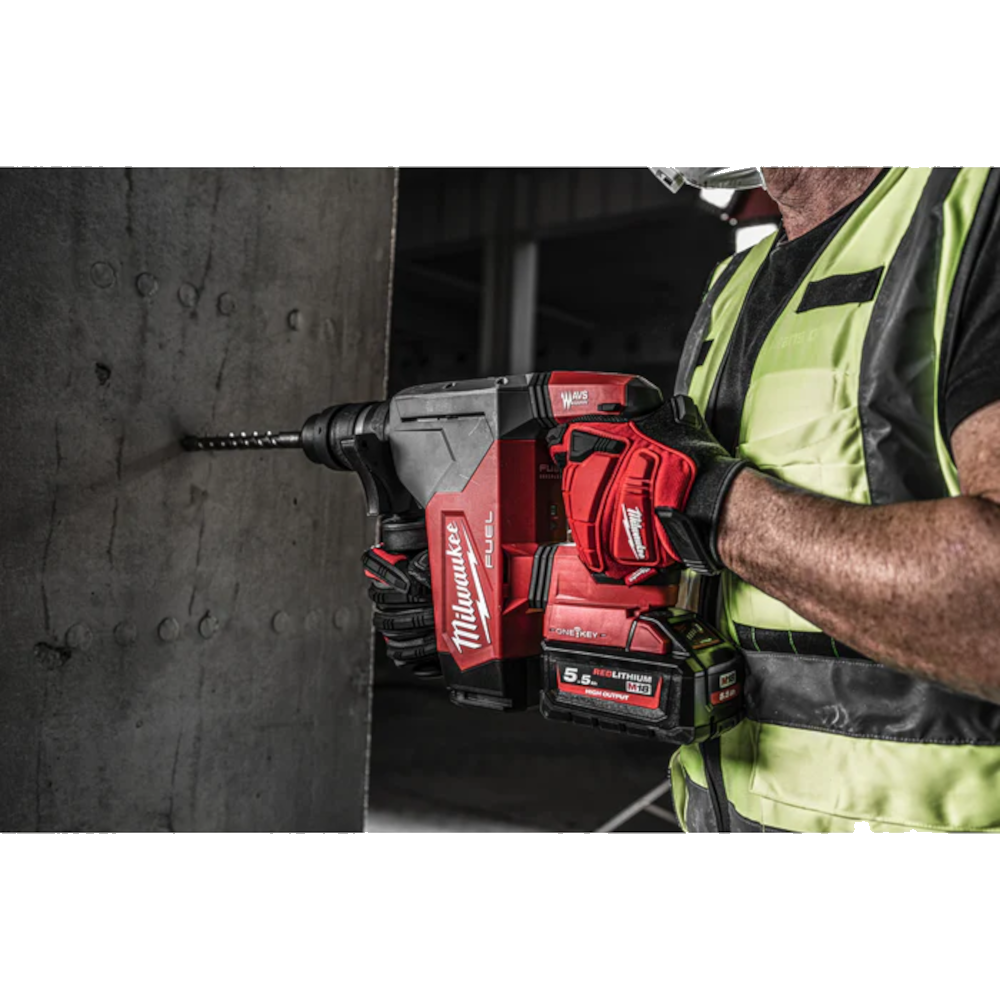 - Ciocan rotopercutor SDS-plus Milwaukee, cu acumulator de 18V, cu energie de lovire de 5 Jouli, si diametrul maxim de gaurire de 32 mm;