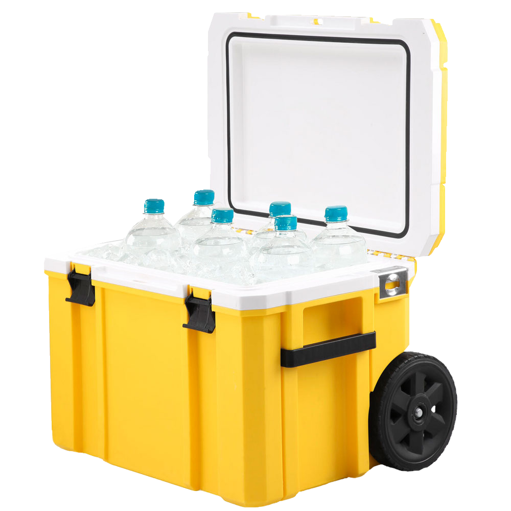 - Mânerul telescopic facilitează transportul. Etanșarea IP54 din capac cu izolație PU din spumă de calitate comercială vă oferă 3 zile de retenție a gheții.