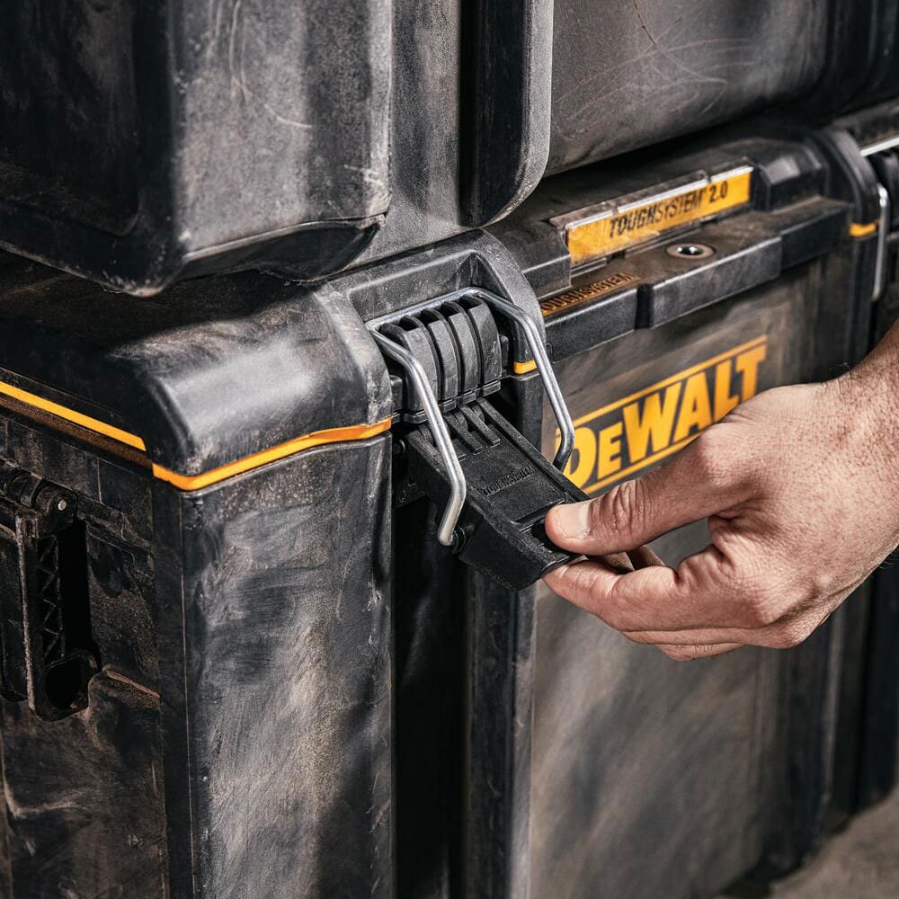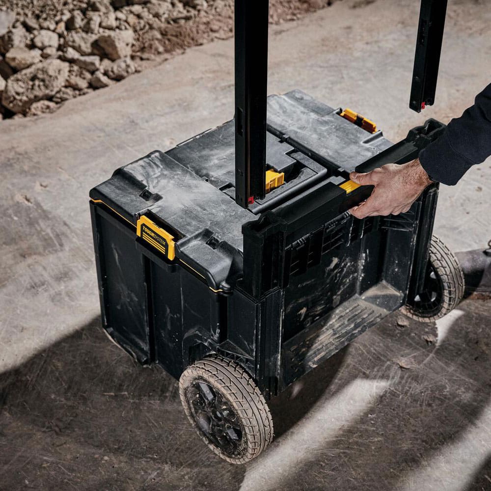 • Cutia este prevazuta cu un maner extensibil si detasabil, precum si cu roti de transport, ceea ce face ca aceasta sa fie foarte fiabila si usor de transportat si depozitat; Cutie cu roti TOUGHSYSTEM 2.0 DeWalt DS450 DWST83295