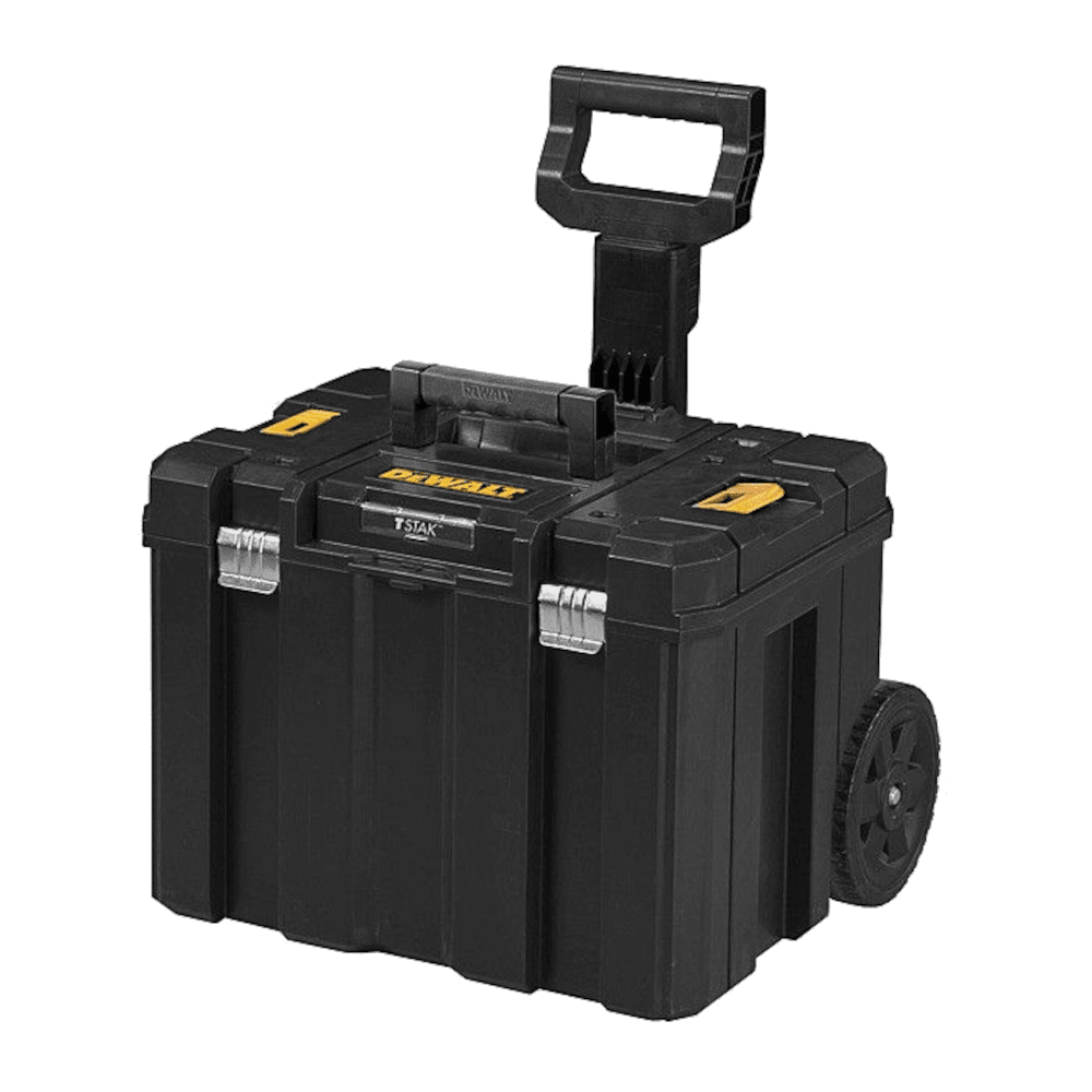 Cutie mobila depozitare Tsak Dewalt – DWST1-75799 are maner telescopic din metal-plastic si roti pentru transport mai usor.