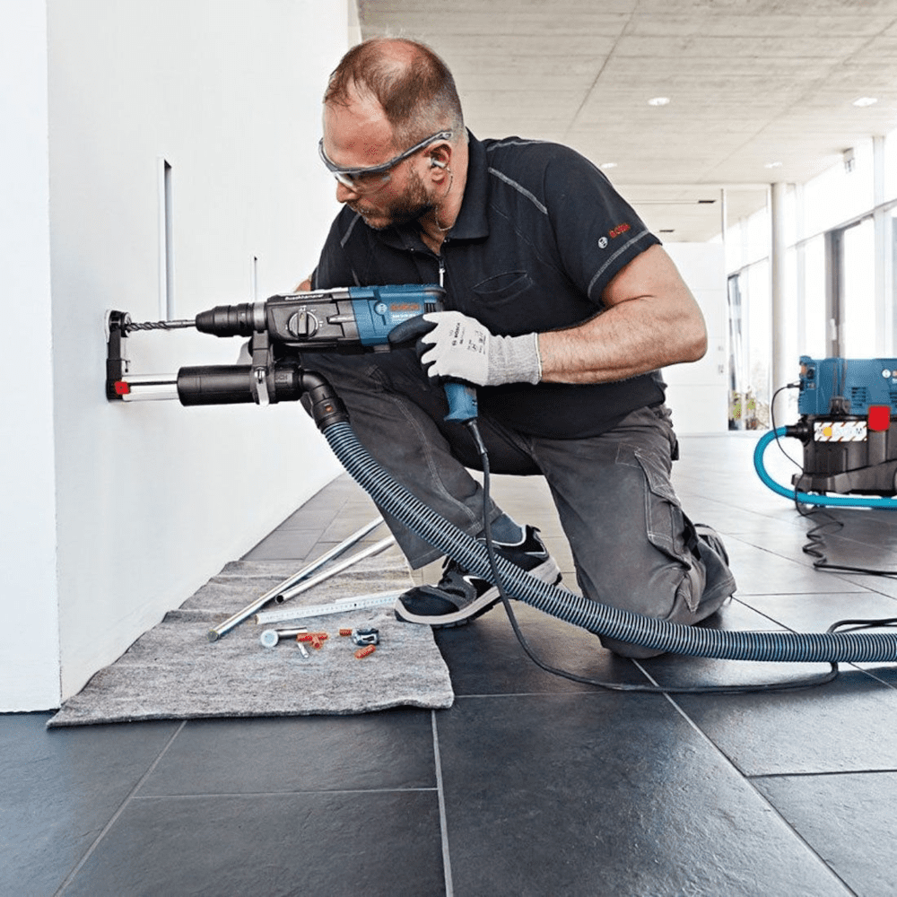 - Sistem de aspirare pentru ciocane rotopercutoare BOSCH cu prindere SDS-Plus;