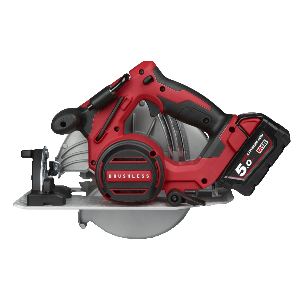- Fierastrau circular cu 2 acumulatori Milwaukee M18 BLCS66-502X din gama de scule cu tehnologie FUEL™, cu diametrul discului de 190 mm