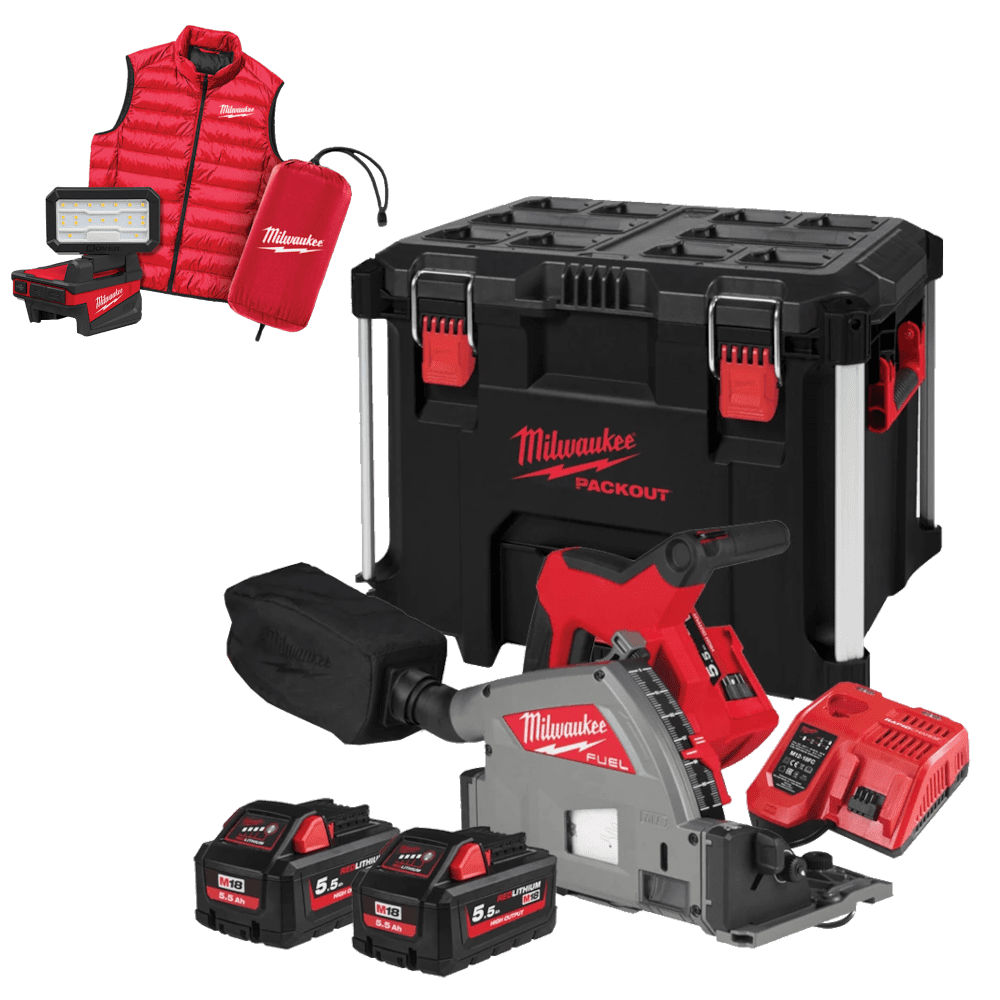 - Incl. 2x baterii M18 de 5,5 Ah cu putere mare si incarcator rapid in cutie