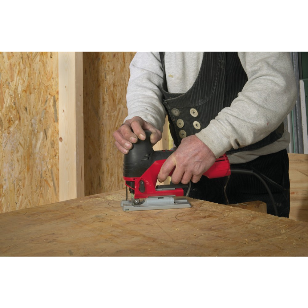 - Se livrează cu 5 pânze de fierăstrău, dispozitiv împotriva așchierii, capac praf, sabot glisant și cablu de 4 m