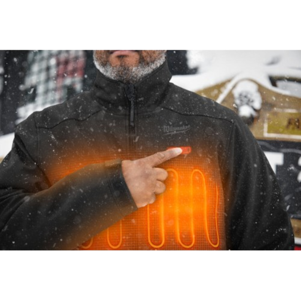 - Sistem de acumulatori flexibil: jacheta poate fi utilizata cu orice tip de acumulator din gama de 12V, Milwaukee® M12
