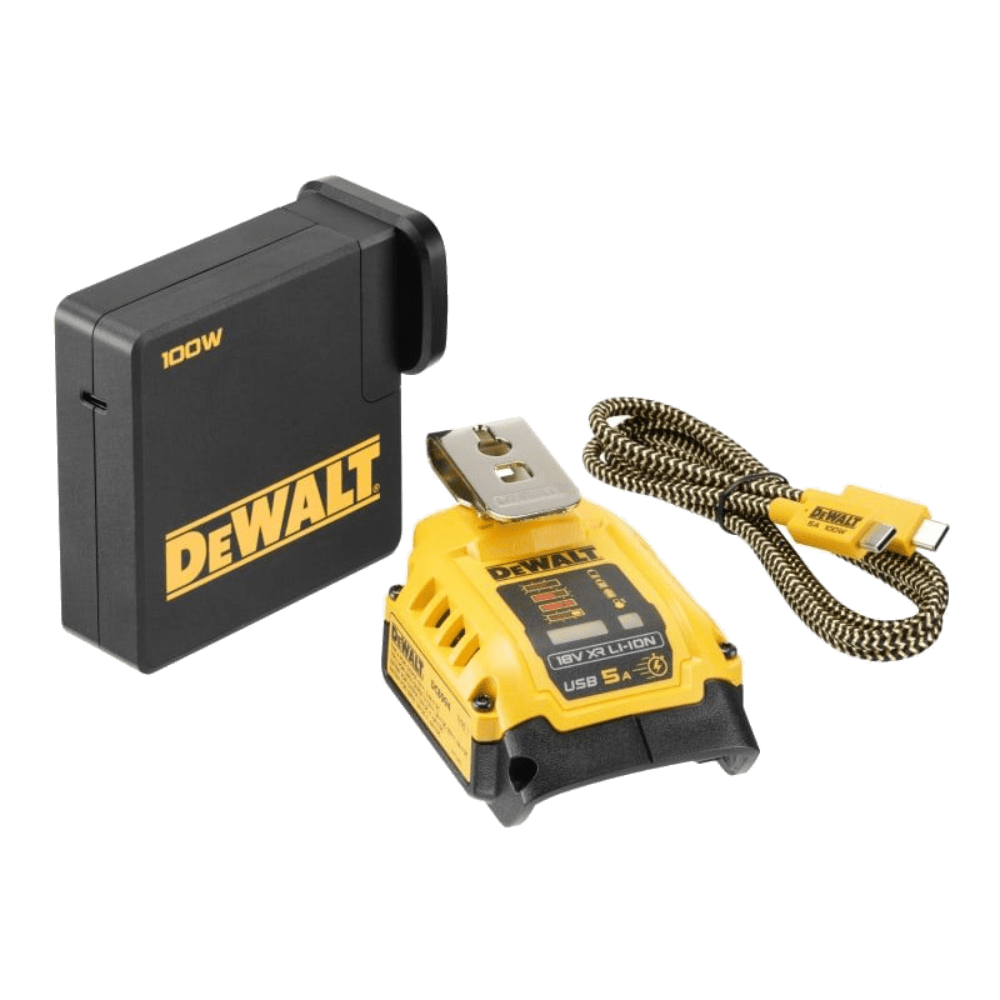 - Încărcătorul USB este echipat cu un port USB-C de livrare bidirecțional de 100 de wați, care vă permite să vă încărcați acumulatorii DEWALT 18V MAX* și FLEXVOLT® și puterea de ieșire pentru a încărca o gamă de dispozitive personale de până la 100W.
