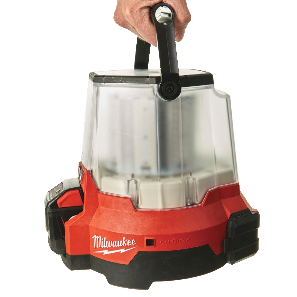 - Lampa de santier cu acumulatori M18 ONESLSP-0 cu Bluetooth® pentru conectarea la aplicatia Milwaukee® ONE-KEY™, care ofera 4.400 de Lumeni;