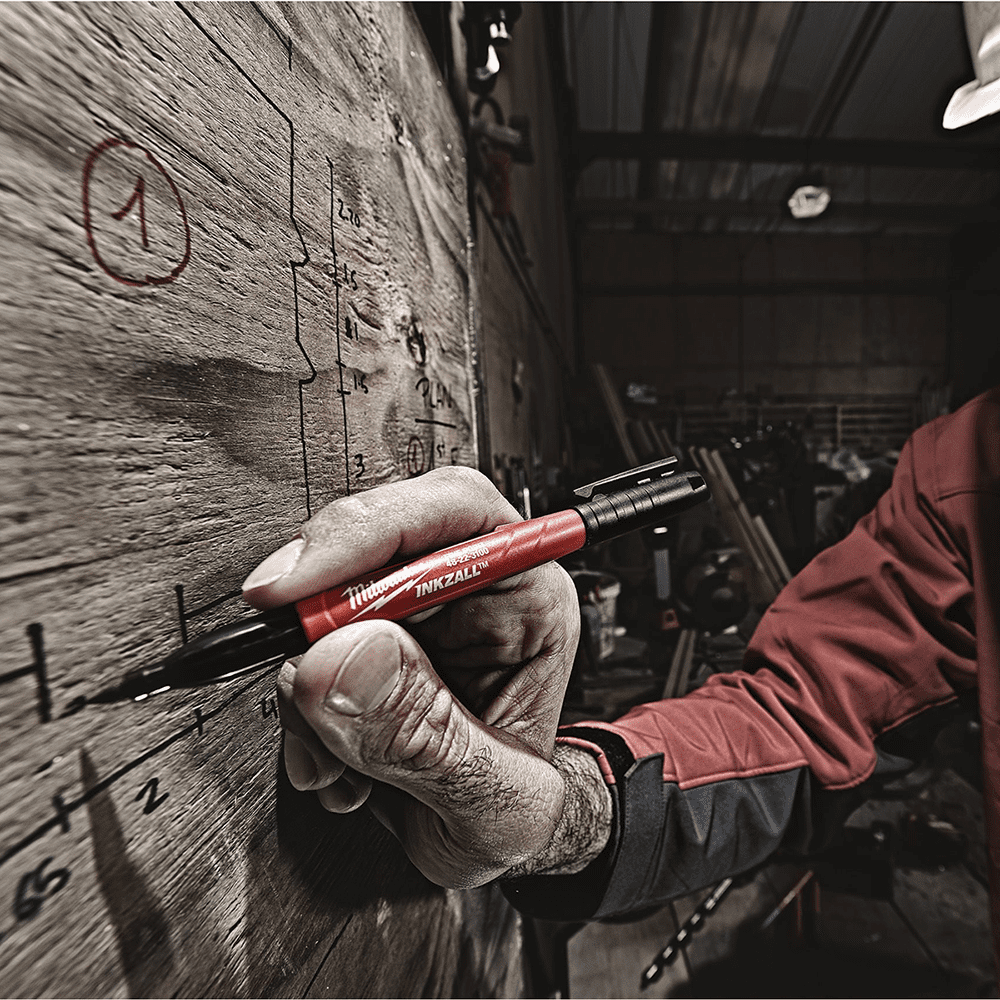 - Marker pentru santier INKZALL™, cu varf fin rezistent, care te ajuta sa scrii pe suprafete prafuite, umede sau uleioase;