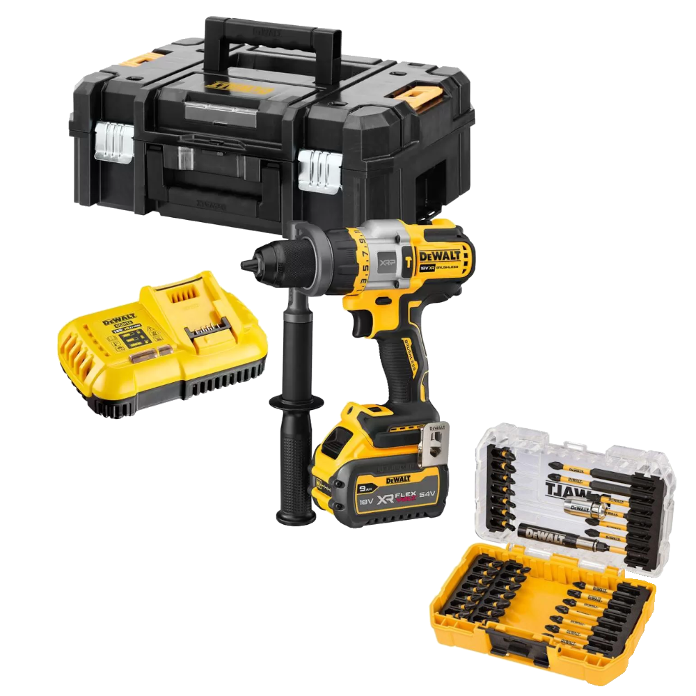 - Masina DCD999 vine dotata cu un acumulator de 9Ah Flexvolt® care asigura o putere si o autonomie sporita suficienta pentru intreaga zi de lucru.