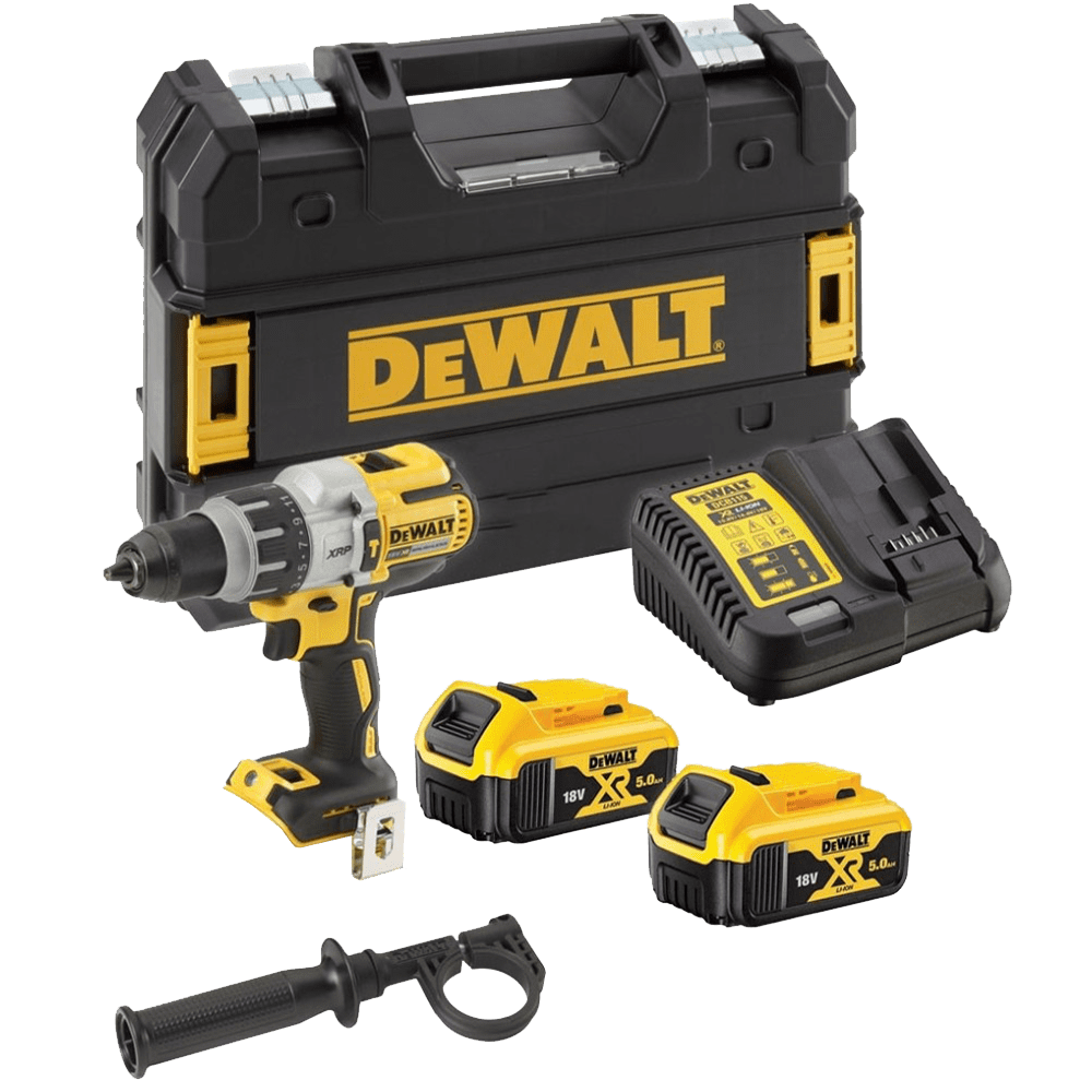 - Mașină de găurit cu percuție cu 2 acumulatori DeWalt DCD996P2 – Cea mai nouă și puternică generație de mașini XRP (Xtreme Runtime & Power) de găurit și înșurubat cu percuție și motor BRUSHLESS ce au în dotare acumulatori Li-Ion XR de 5.0Ah