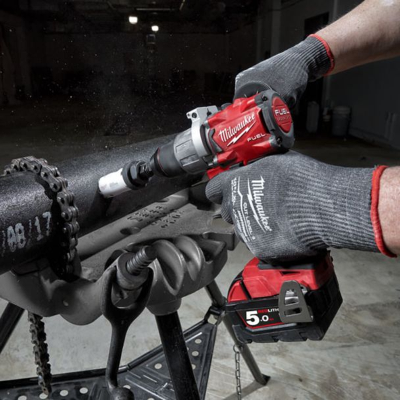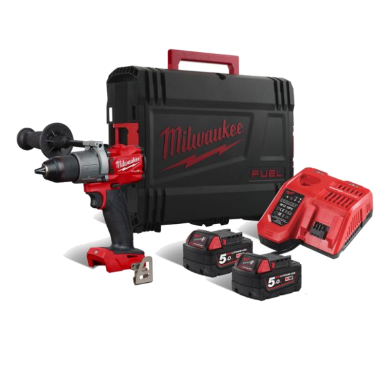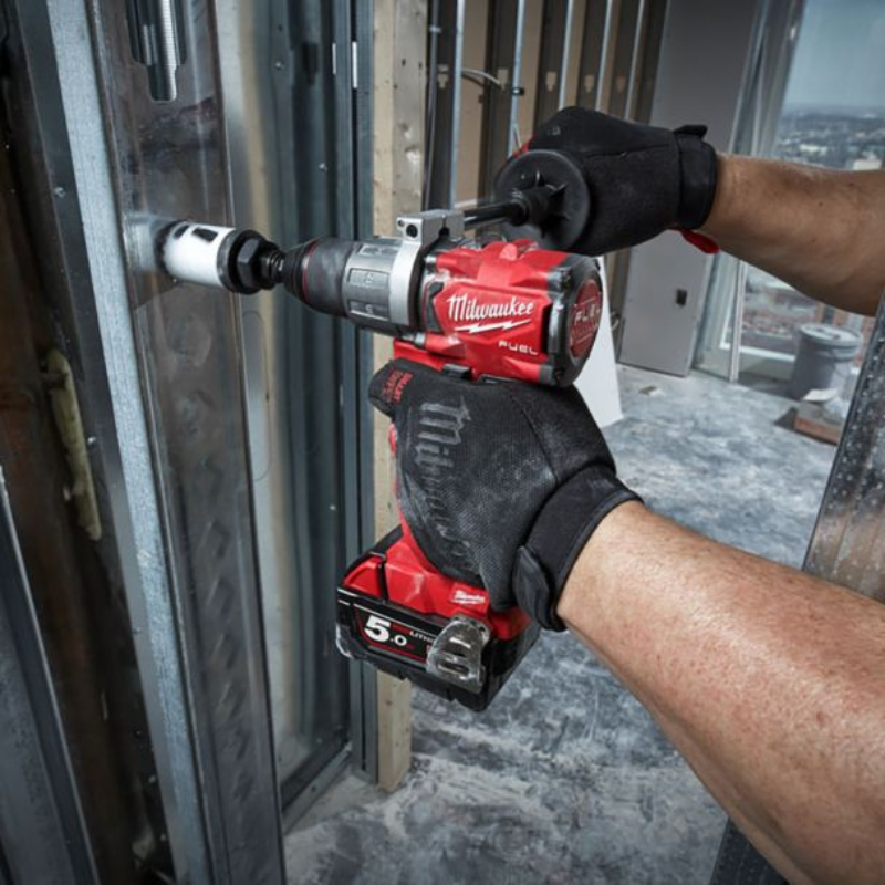 - Masina de gaurit/infiletat cu 2 acumulatori Milwaukee M18 FDD2-502X de 18V, motor fara perii POWERSTATE™, cuplu de strangere de 135 Nm;