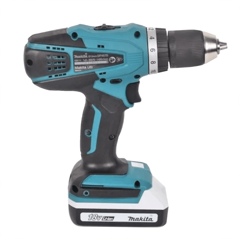 - Angrenaj metalic pentru o durabilitate ridicata. Masina de gaurit si infiletat cu 2 acumulatori Makita DF457DWE