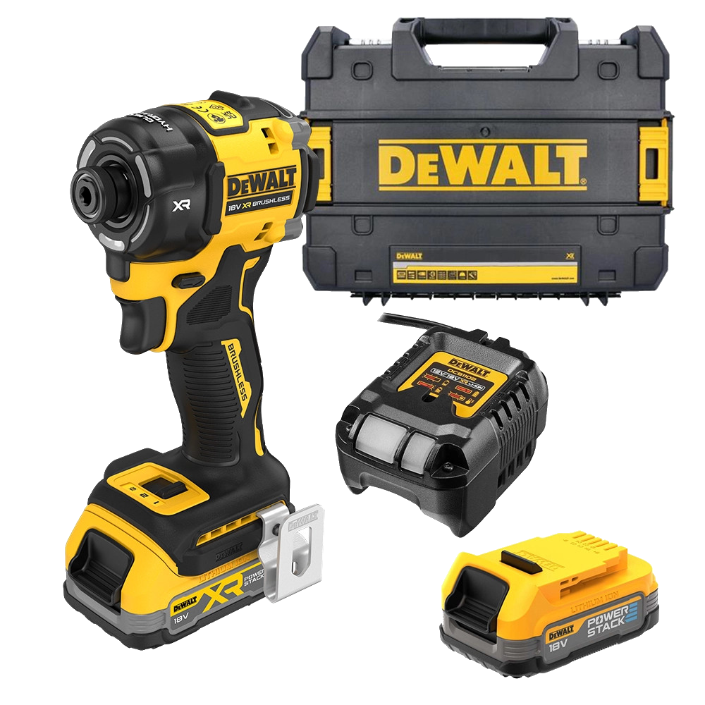 - Acceptă în continuare aceleași baterii 18V XR și folosește aceleași biți hexagonali de 1/4″ ca șurubelnițele cu impact normale.