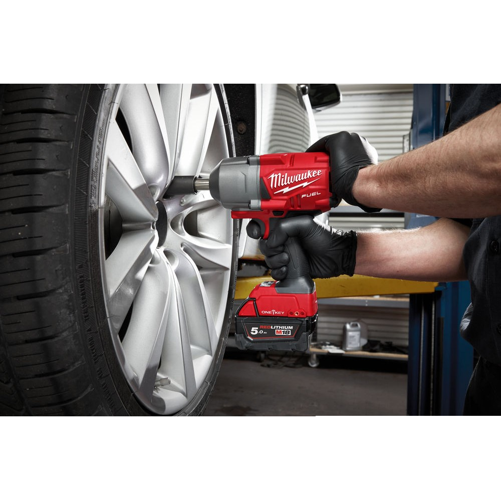 - Cheia de impact M18 FUEL™ ONE-KEY™cu cuplu ridicat și gât lung livrează un cuplu de strângere de 1017 Nm