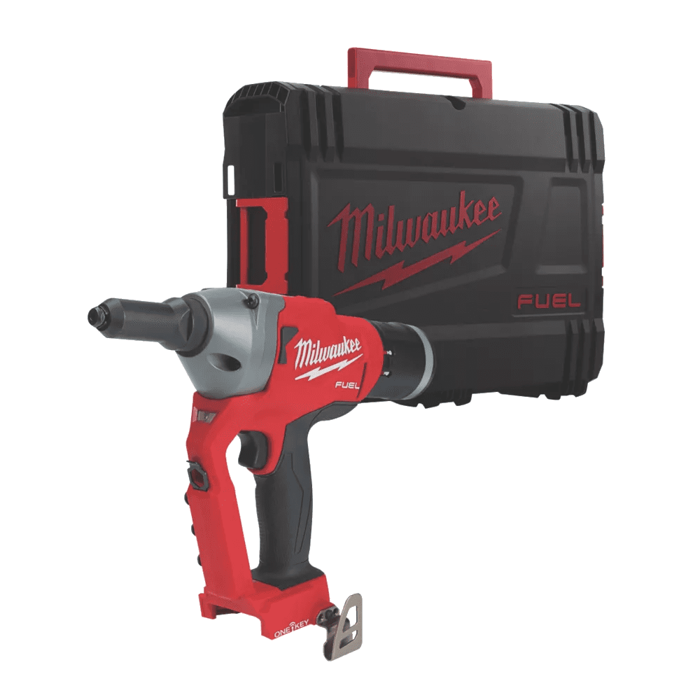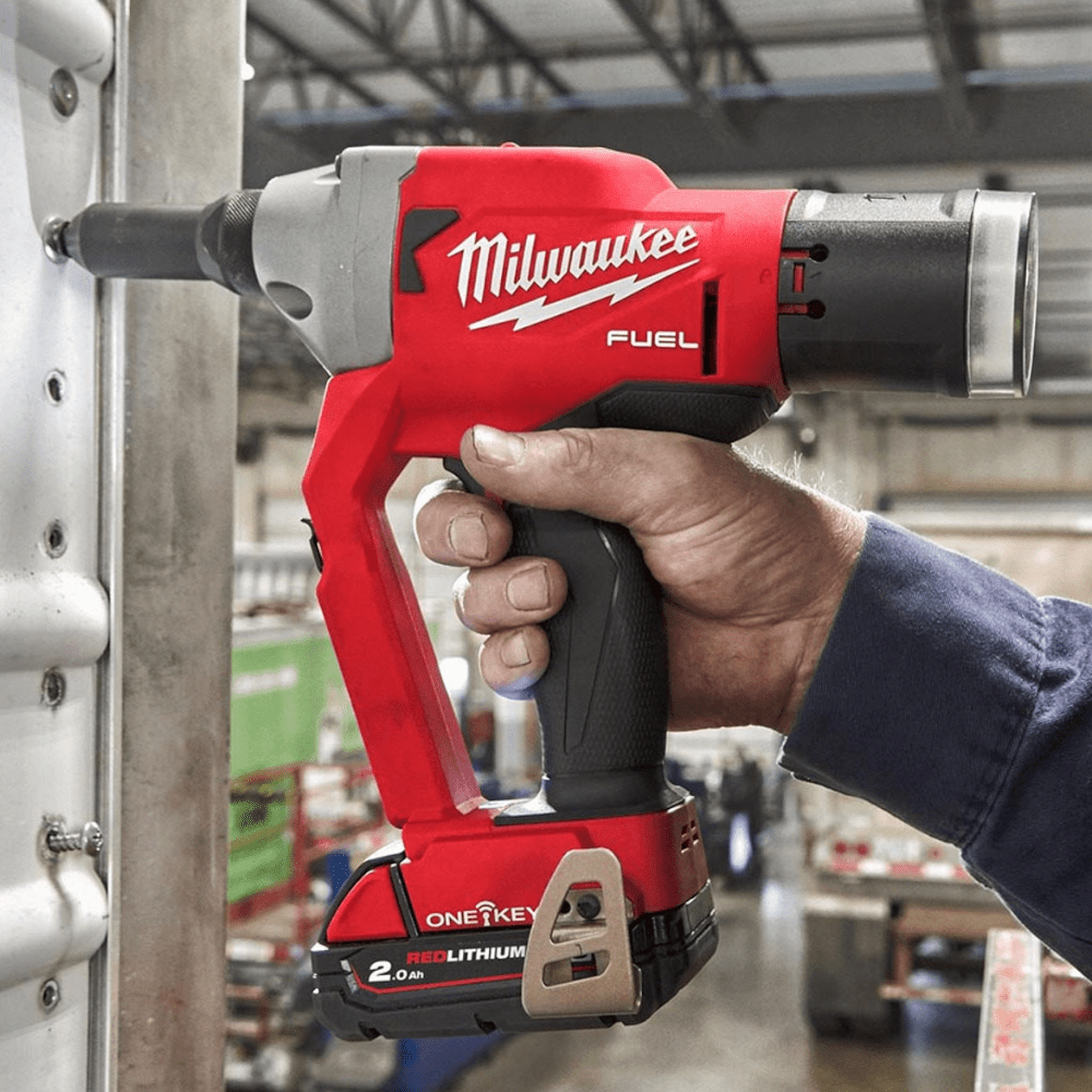 - Pistolul pentru nituit M18 FUEL™ ONE-KEY™ integrează trei tehnologii exclusive MILWAUKEE® – motorul fără perii POWERSTATE™, acumulatorul REDLITHIUM™ și sistemul inteligent REDLINK PLUS™ – ce oferă performanță superioară, durabilitate și autonomie pe șantier;