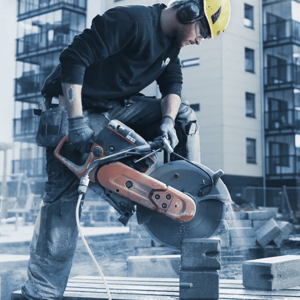 - Potrivit pentru lucrări rutiere: tăierea în direcție dreaptă, în curbe sau lângă trotuar este ușoară atunci când este folosit cu căruciorul KV7.