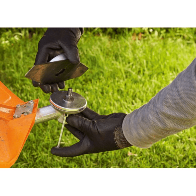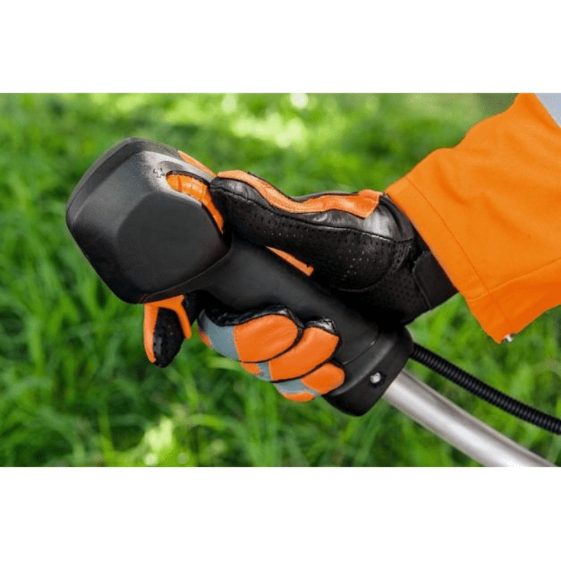 Ghidonul de cosit ergonomic poate fi ajustat individual pentru fiecare utilizator fără unelte, cu ajutorul unui şurub de fixare (imaginea prezintă un dispozitiv de tăiere).