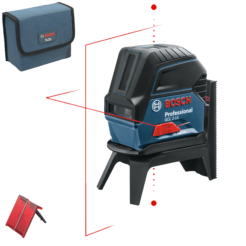 - GCL 2-15 Professional este dotată cu o nivelă laser cu linii cu un interval de lucru de până la 15 m şi autonivelează în mai puţin de 4 secunde. Această nivelă laser multifuncţională este ideală pentru a fi utilizată cu RM 1 Professional, care poate fi ataşată rapid prin intermediul unui mecanism glisant simplu. Este robustă datorită clasei de protecţie IP54 împotriva pătrunderii prafului şi stropilor de apă. La oprirea aparatului, mecanismul de blocare a pendulului permite transportul în siguranţă.