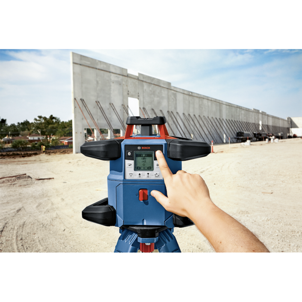 - Oferă conectivitate practică, care permite efectuarea lucrărilor într-un mod mai focalizat şi mai puţin timp pierdut. Operarea sculei este intuitivă datorită ecranului său şi accesului la aplicaţia Levelling Remote care vizualizează toate funcţiile, inclusiv o setare de pantă dublă, pentru a economisi timp preţios.