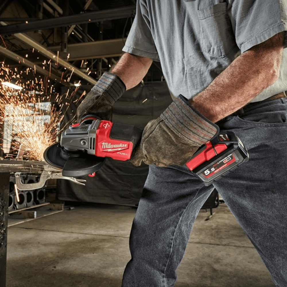 - Polizorul unghiular M18™ HIGH OUTPUT™ de 125mm livrează o putere de debitare de până la 145 de tăieri per încărcare (5.5 Ah) în țeava de oțel inoxidabil de 2″