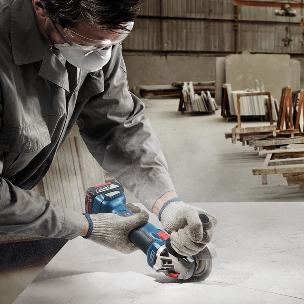- Putere sporită cu 66% şi timp de funcţionare cu 30% mai îndelungat la operaţii de tăiere şi şlefuire în comparaţie cu GWS 18V-LI, graţie motorului nou fără perii şi optimizării performanţei acumulatorilor ProCORE18V, care oferă o putere echivalentă cu 1000 W. Elementele de protecţie electrică precum fast brake, kickback, protecţia la repornire şi sistemul unic drop control de la Bosch asigură un nivel avansat de siguranţă şi de control al sculei.