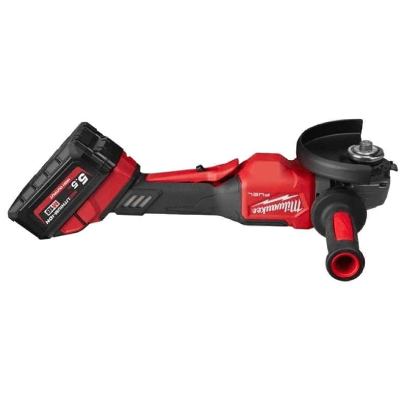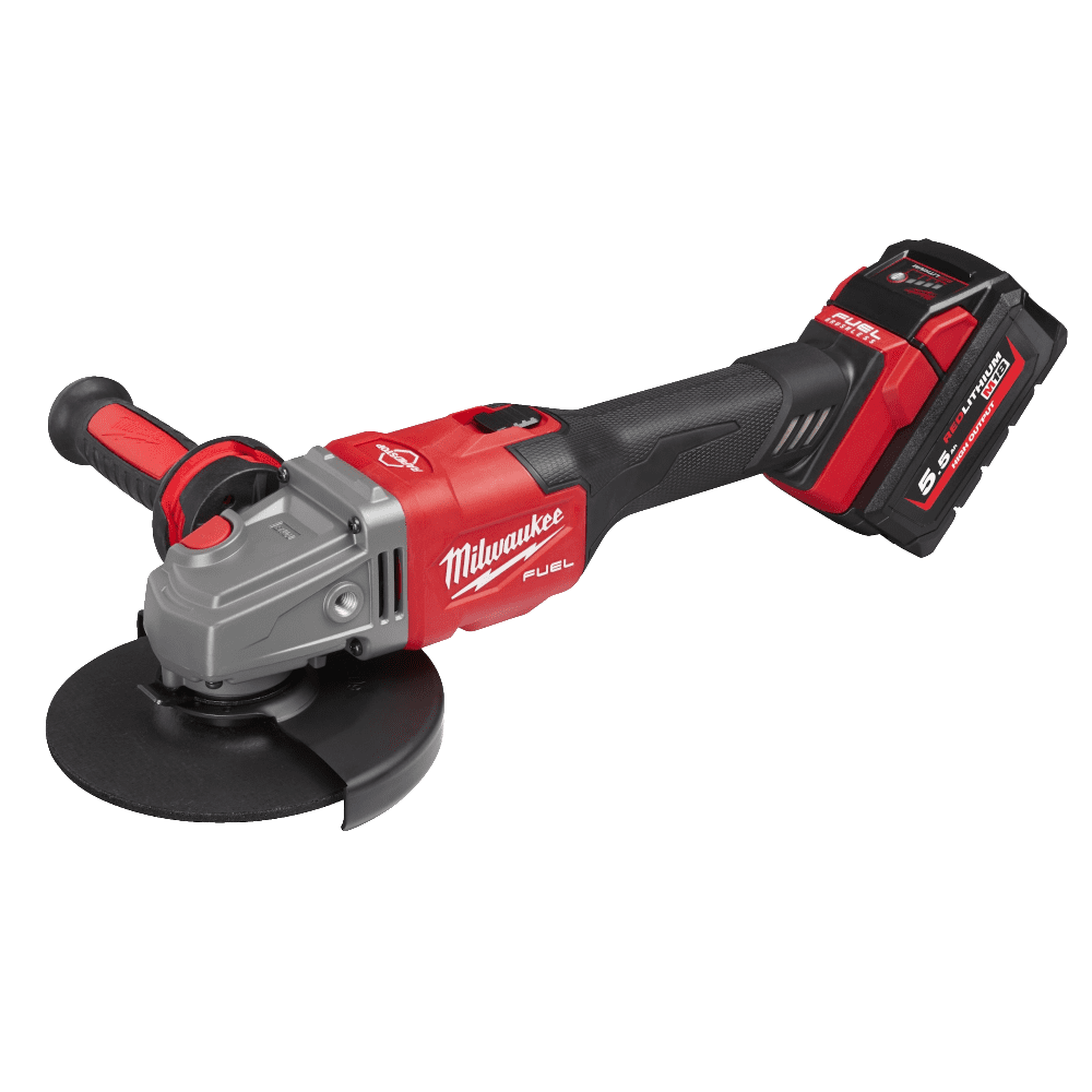 - Polizor unghiular Milwaukee, cu acumulator de 18V, cu motor fara perii cu tehnologie FUEL™, cu franarea discului si comutator clapeta.