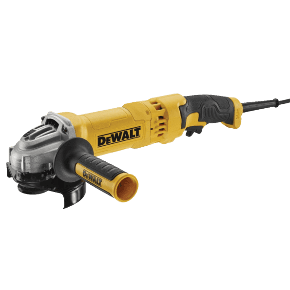 - Polizor unghiular DeWalt DWE4277 – Butonul de siguranta previne pornirea accidentala a polizorului cand este conectat la sursa de curent, chiar daca este pornit. Butonul trebuie resetat inainte ca polizorul sa fie conectat la sursa de curent