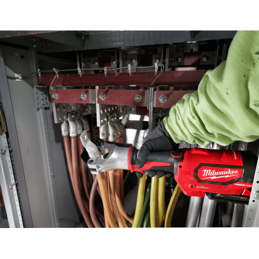 - Presa hidraulica cu Bluetooth® din seria ONE-KEY™ HDCT M18™ FORCE LOGIC™ sertizează conectori pe sârma flexibilă de la 10 până la 300 mm² fără a mai schimba bacurile