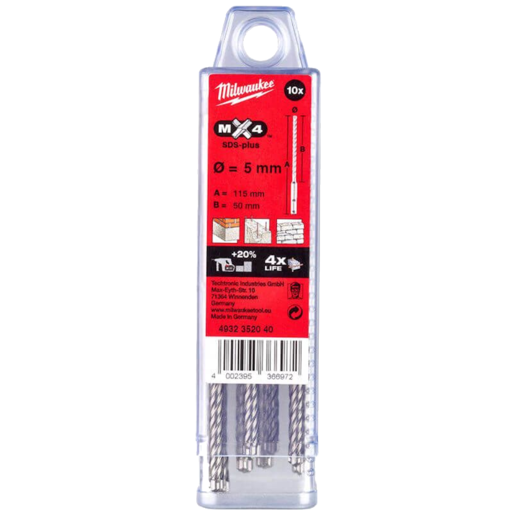 Set 10 Burghie Milwaukee SDS-PLUS Mx4 Ø5x50x115mm