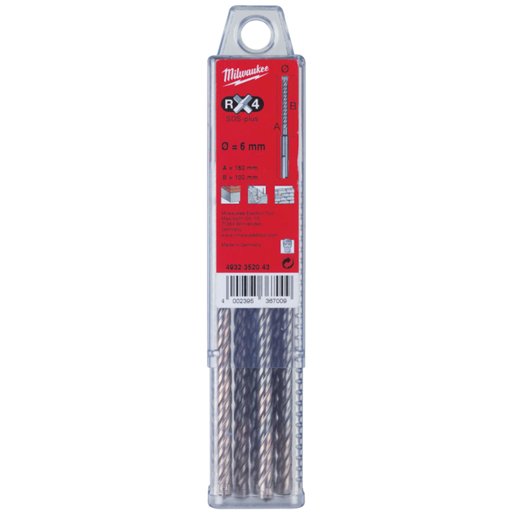 Set 10 Burghie Milwaukee SDS-PLUS Mx4 Ø6x100x165mm