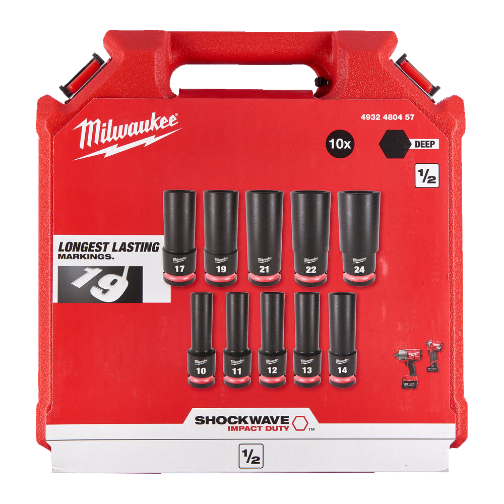 - Setul contine 10 chei tubulare de impact lungi, Shockwave Impact Duty™, cu prindere de 1⁄2″: Ø10 mm, Ø11 mm, Ø12 mm, Ø13 mm, Ø14 mm, Ø17 mm, Ø19 mm, Ø21 mm, Ø22 mm si Ø24 mm