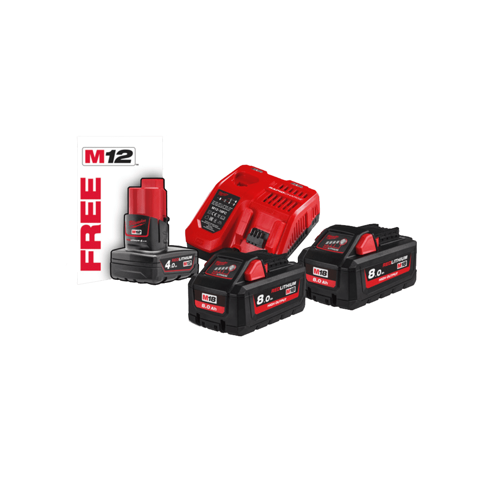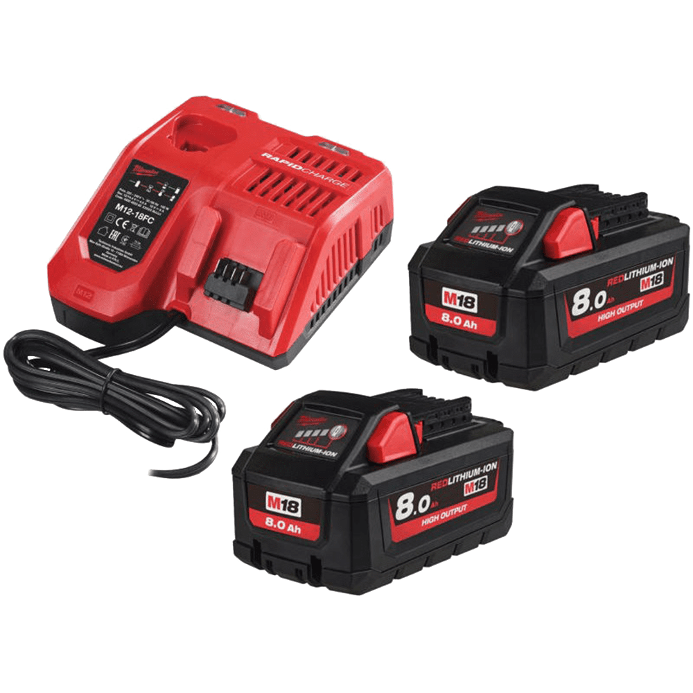 Set 2 acumulatori 18V cu 8 Ah cu incarcator Milwaukee M18 HNRG-802