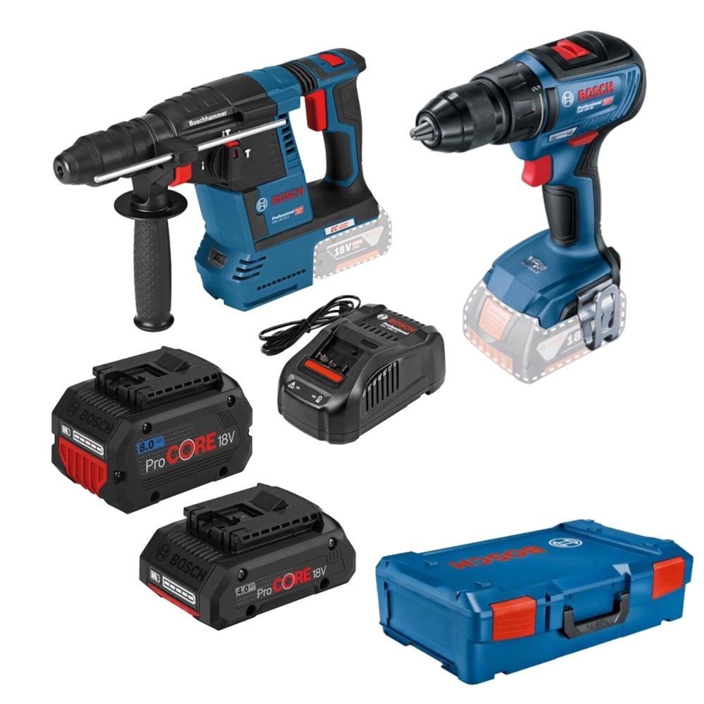 Set 2 scule cu acumulatori Bosch GSR 18V-50 + GBH 18V-26