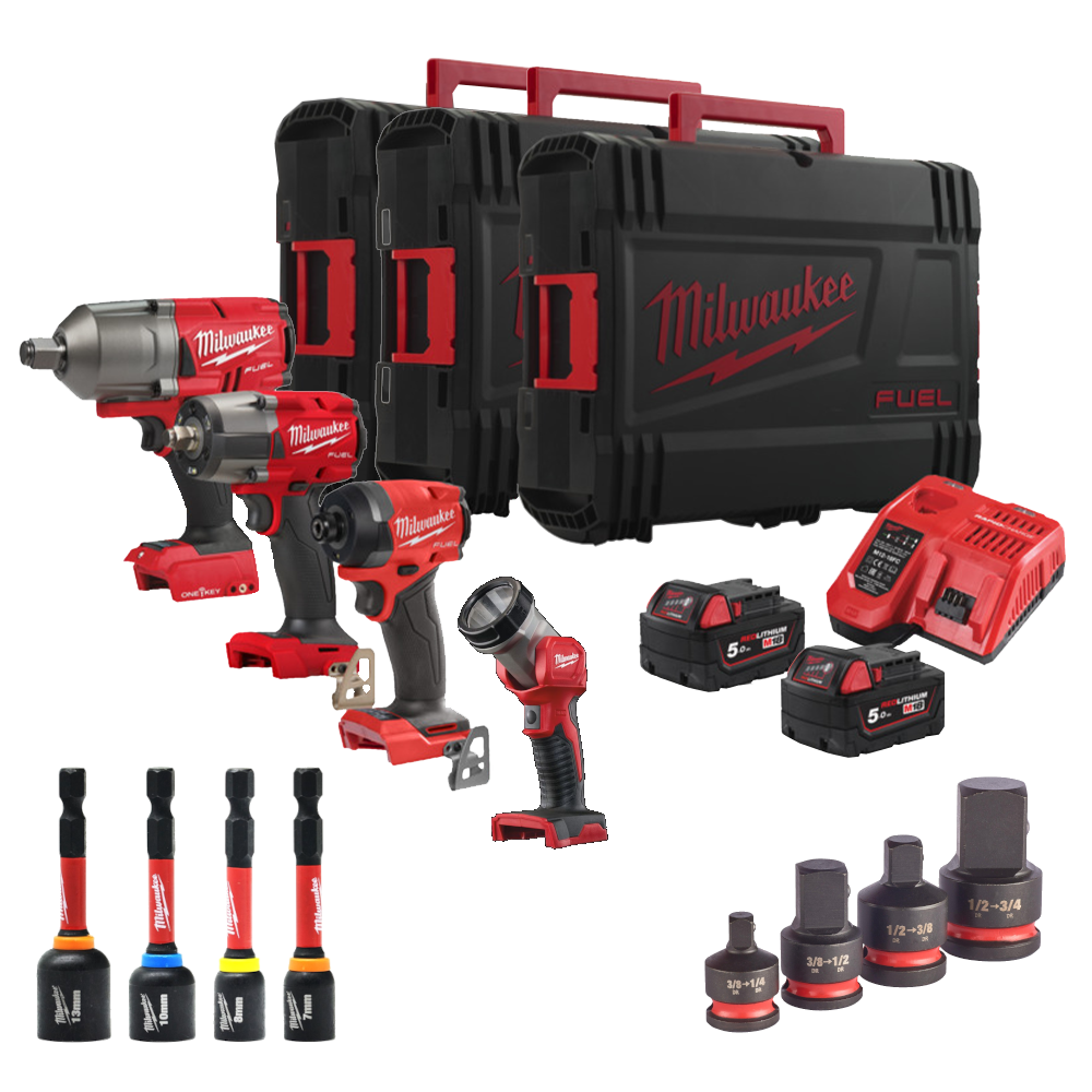Set 4 scule cu 2 acumulatori Milwaukee M18 FPP4G2-502B