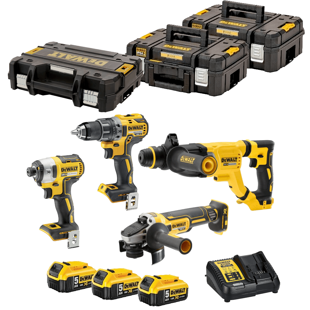 Set 4 scule cu 3 acumulatori DeWalt DCK485P3T