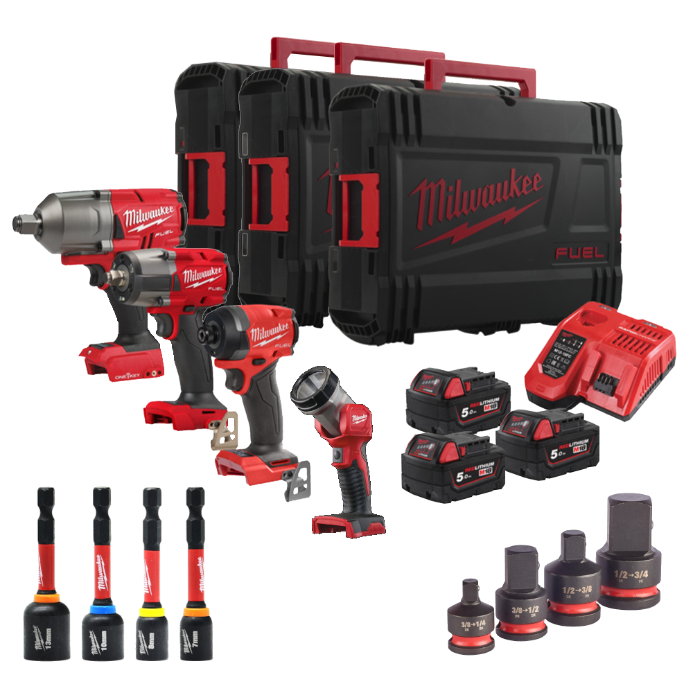 Set 4 scule cu 3 acumulatori Milwaukee M18 FPP4G3-503B