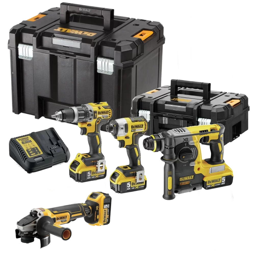 - Acest set de 4 scule electrice Dewalt va da posibilitatea de a avea cele mai uzuale scule electrice si de a beneficia de mobilitatea oferita de alimentarea prin acumulatori.